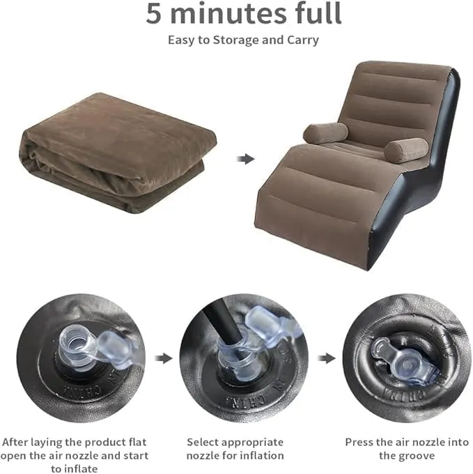 Air Sofa Chair , Outdoor Folding Lounger Flocking Lazy Couch, 2 in 1 Lounge Bed Set Portable Recliner with Air Pump