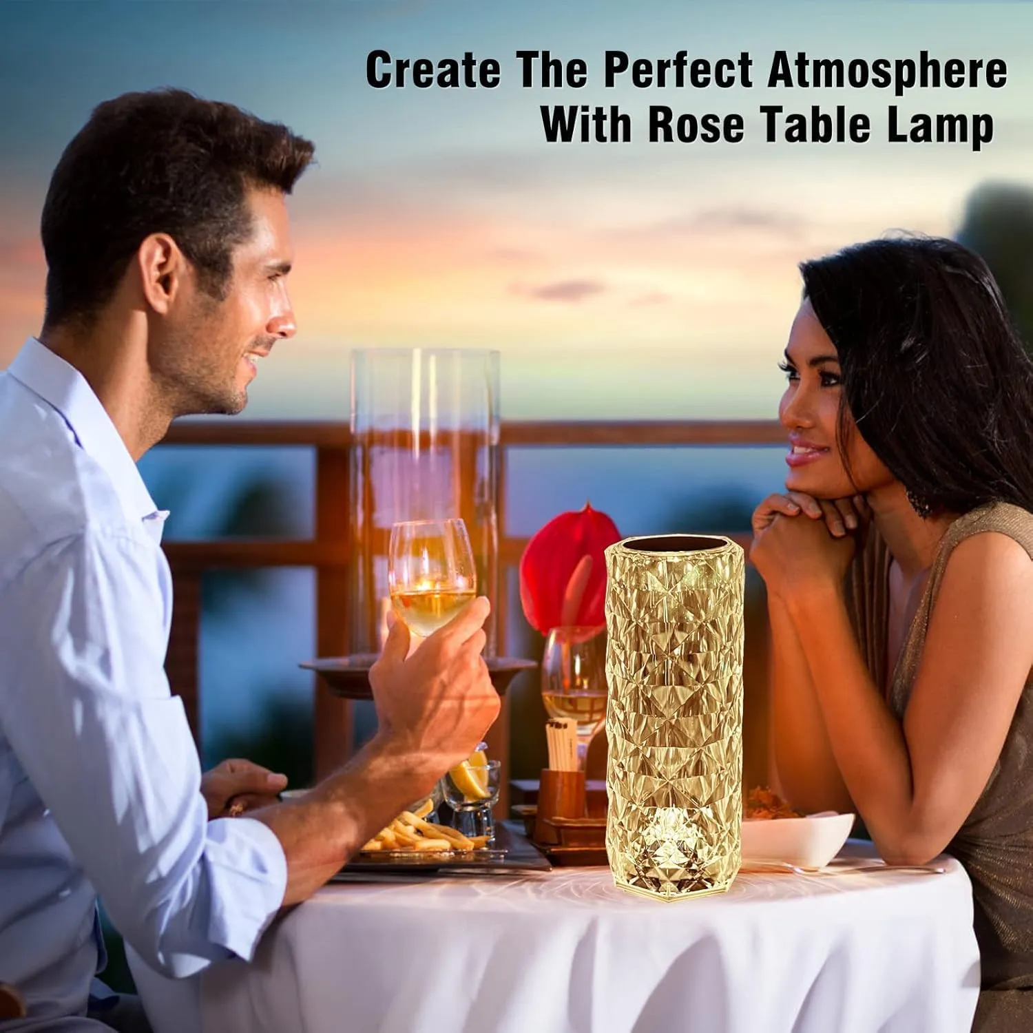 Crystal Lamp,16 Color Changing Rose Crystal Diamond Table Lamp,USB Rechargeable Touch Bedside Lamp Night Light
