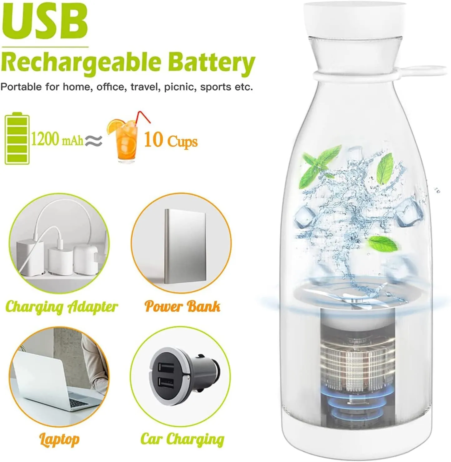 ✔ USB Rechargeable Battery – Blend anytime, anywhere without cables