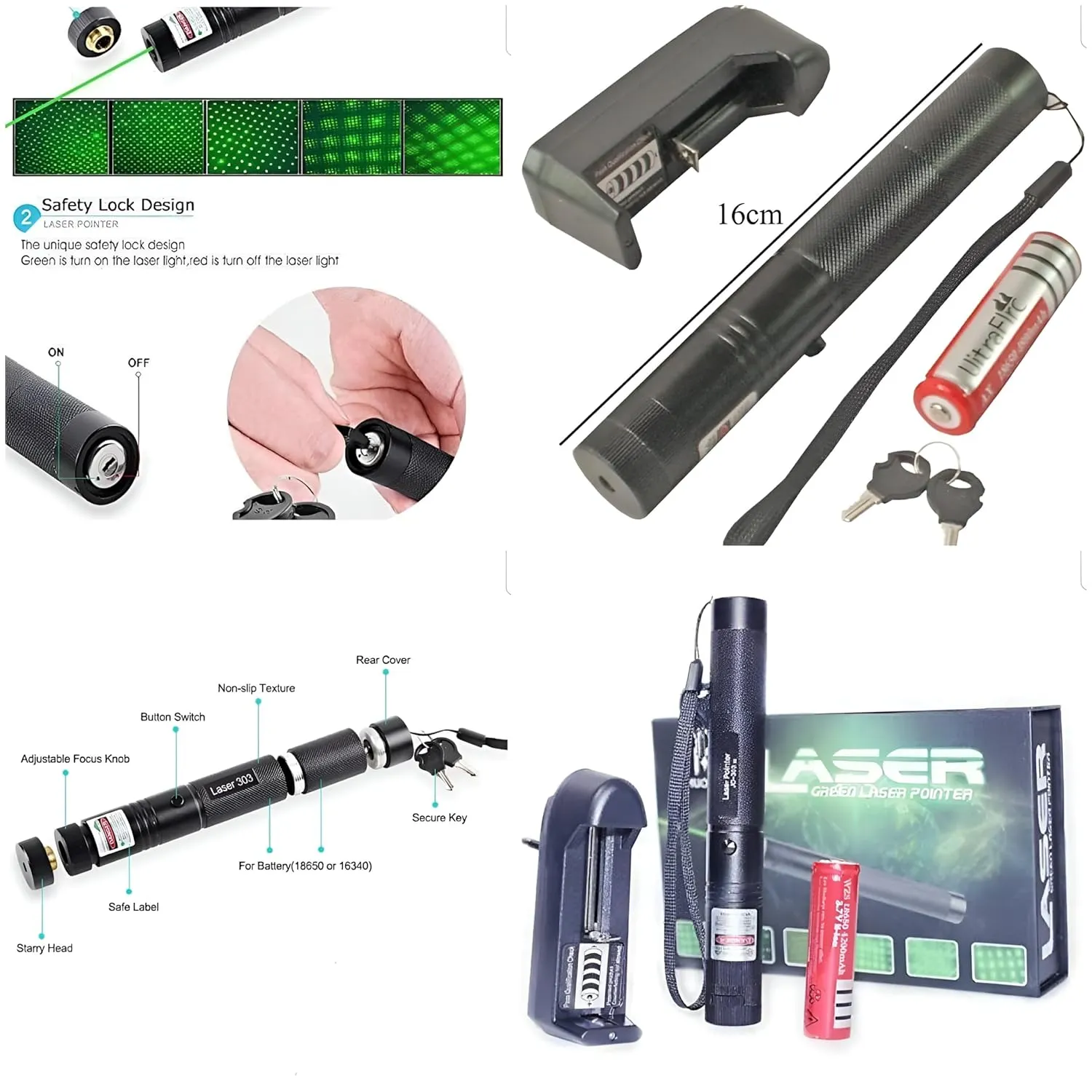 Multi purpose Laser Light Powerful 1000MW Rechargeable Green Laser Pointer Pen for Kids to Play, 2000 Metres Laser Pointer High Power Pen (big laser light)